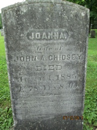 #279 John R.Chidsey b: September 16,1831 New York; d: Fetbuary 10, 1900, Candor, Tioga, New York; m: Mary J. ? about 1865; b: 1837, New York