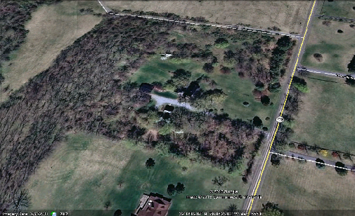 retains its rural setting and its historic outbuildings. A frame corn crib, brick granary, stone foundation of a barn, and a modern shed are located south and west of the main house, and a log meat house is sited north of the house. The graveled driveway runs along the south side of the property and terminates just beyond the side of the house. The relatively level front yard contains two extremely large sugar maples as well as other hardwoods and evergreens. The house is sited facing Apple Pie Ridge Road and is visible from the road. The property was purchased by the current owners in 1976.