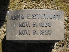 Anna E. Stewart Birth: Nov. 9, 1838 Death: Nov. 6, 1923