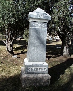 Charles Phillips Chedsey Birth: Jun. 6, 1817 Death: Jul. 12, 1896 Burial: Columbia Cemetery Boulder Boulder County Colorado, USA Plot: D71- Charles A Chedsey Birth: Nov. 26, 1840 Death: Mar. 12, 1910 son of Charles P. & Sarah C. Chedsey