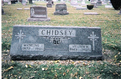 #446 William H. Chidsey b:May 5, 1868, Joliet, Illinois; d: May 23, 1947, Joliet, Illinois; m: Madeline Korselius, b: 1872, Illinois; d: 1961 #447 Isaac Patrick Chidsey b: July 18,1869, Joliet, Illinois; d: September 9, 1933, Fort Lyons, Colorado; m: Mattie Collins