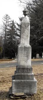 Married: Mary A Beach July 4, 1842,Harwinton, Litchfield, Connecticut; b: 1822, Harwinton, Litchfield, Connecticut Children: #4444 Charles B Holt b: 1848; d: 1913, Thomaston, Litchfield, Connecticut |