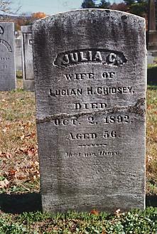 Notes: Julie Caroline Case b: 1836 Simsbury,Conn; d: October 02, 1892 Avon, Hartford, Connecticut; dau of Elam and Ruth Case