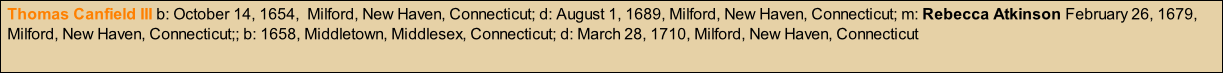 b: June 5, 1680, Milford, New Haven, Connecticut; d: December 1, 1760, Durham, Middlesex, Connecticut; m: Mary Hepzibah Camp January 3, 1705, Milford, New Haven, Connecticut; b: 1684;d: July 30, 1740, Durham, Middlesex, Connecticut